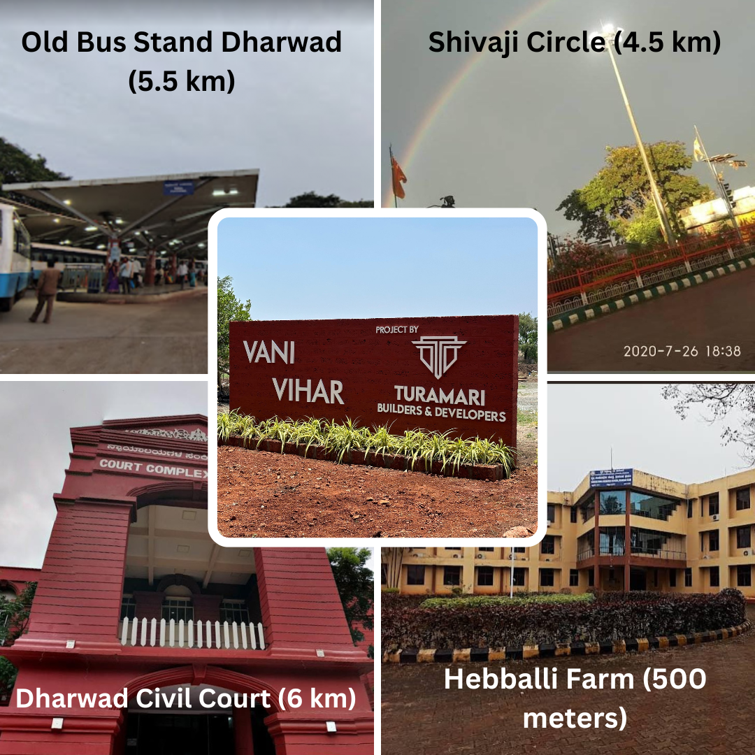 With plot sizes of 30x50, this property offers the perfect space to build your dream home. Positioned close to essential landmarks, it is just 5.5 km from the Old Bus Stand, 4.5 km from Shivaji Circle, and a short 6 km drive from Dharwad Civil Court. Additionally, Vani Vihar is a mere 500 meters from Hebballi Farm, ensuring a serene environment close to the city.